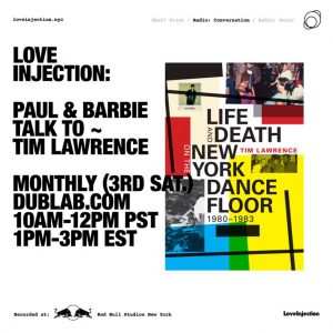 Love Injection: Words is the sonic extension of the print fanzine out of New York. Paul Raffaele & Barbie Bertisch host roundtable discussions, interviews and invite friends to discuss music and the culture surrounding it. It’s pre-recorded at Red Bull Studios in New York and airs the third Saturday of each month from 10am-12pm PST (1pm-3pm EST) on Dublab.