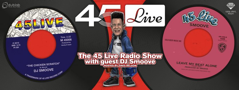 100% 45rpm 7″ singles, covering many and any genres of music. Hosted by Greg Belson and featuring guest mixes each and every show from members of the 45 Live international DJ team. Expect heavy soul, deep funk, breakbeats, gospel, leftfield, electronica, psyche, rock, acid, pop, and, well, anything you can think of, as long as it’s on a 45!