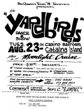 The Yardbirds’ Casino Ballroom, Catalina Island ad and newspaper story