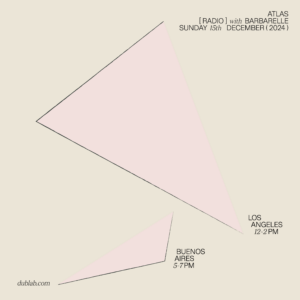 Atlas is a monthly show hosted by Barbarelle in Buenos Aires, Argentina. Connecting different parts of the world with obscure tracks, Barbarelle takes us through a deep and evolving sonic landscape. From Ambient, Experimental and Jazz, to Latin, African and Middle East sounds, this imaginary musical journey evoques the -both subtle and deep- connection between worlds, existent and imaginary.