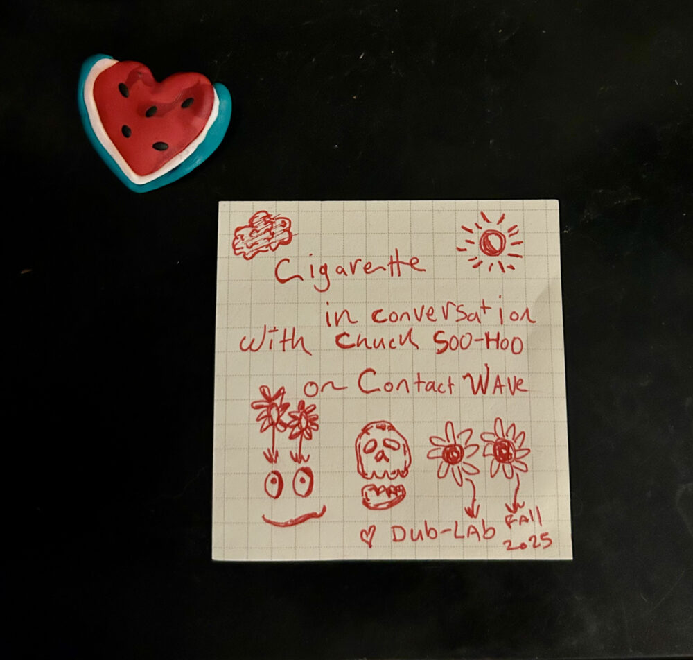 Lea Bertucci – Oracular Chasm – from “The Oracle” (Cibachrome Editions) (2025) Keji Haino + Shuta Hasunuma – 休 Rest – from “U TA” (Temporal Drift) (2025) Taylor Deupree & The Humble Bee – Case Study 5 – from “Re: Case Studies” (Dauw) (2025) Meitei – San-no-yu – from Sen’nyu (KITCHEN. LABEL) (2025) Early Fern – Three Terns – from “Wetland Interiors” (sound as language) (2025) Pulse Emitter – Jellyfish and Friends – from “Tide Pools” (Hausu Mountain) (2025) Willow Sky-Biggs – Interior Castle – from “Elsewhere” (Inner Islands) (2025)CIGARETTE INTERVIEW