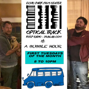 Optical Track is a weekly show presented by members of the Echo Park Film Center Co-op, a group of artists who collectively staff EPFC as volunteers for the cinematic revolution. Each week features a sonic slideshow as we turn off the projector bulbs and turn up the sound.
