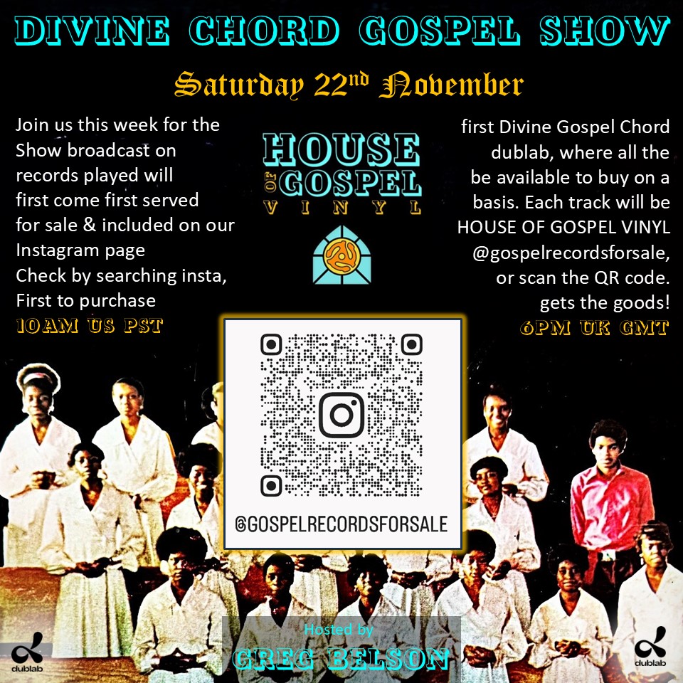 The Divine Chord Gospel Show continues to delve deeper into the crates to bring you soul music you might not have heard before. This month it’s a first for the broadcast, where all of the records played are available for purchase on our brand new instagram sales page;