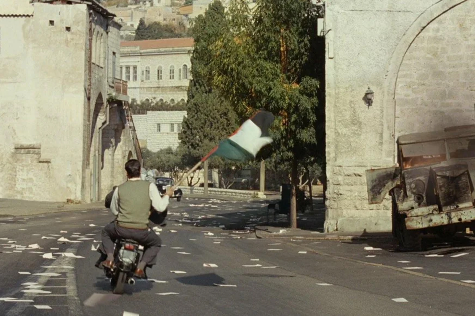 The Time That Remains is the final installment in Suleiman’s autobiographical trilogy. It was inspired by his father’s diaries, letters his mother wrote to relatives who fled the Israeli occupation, and his own recollections of his family’s experiences.