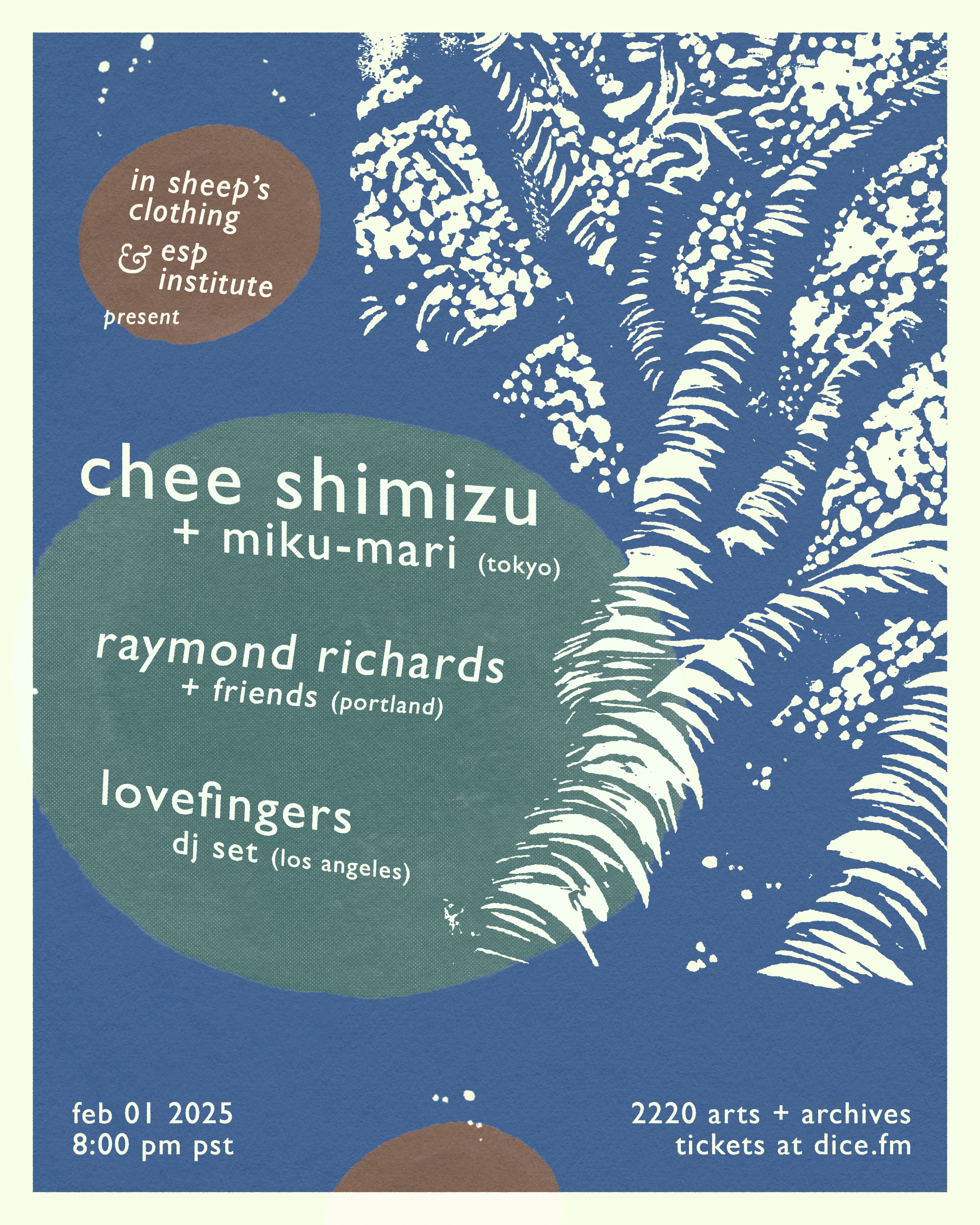 In Sheep’s Clothing x ESP Institute presents Chee Shimizu + miku-mari, colllaborating live. Raymond Richards joins the night with a live set, and Lovefingers DJs.