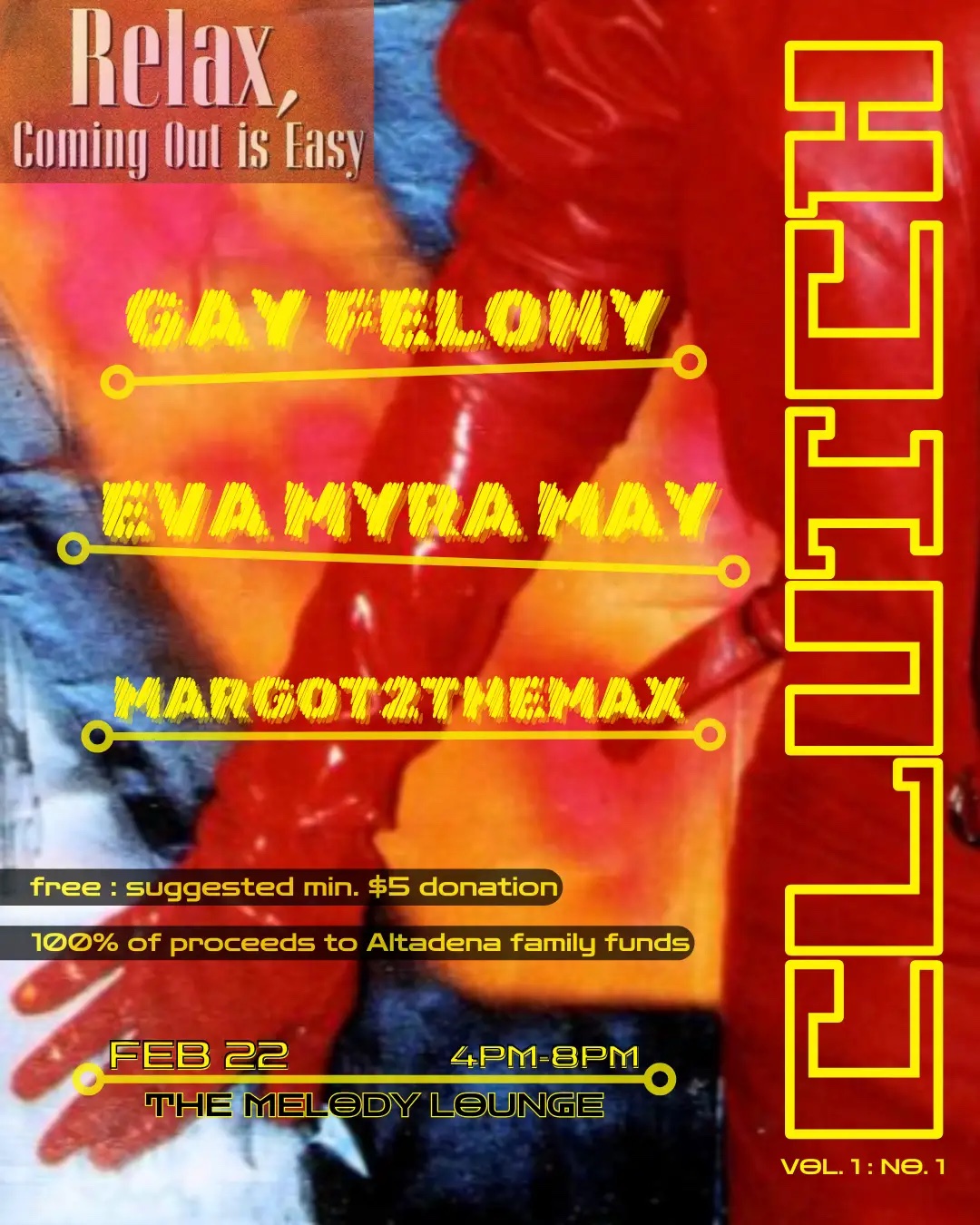 CLUTCH at @melodylounge! @GayFelony, Eva Myra May and @margot2themax will be spinning all vinyl for this inaugural addition, to ensure your handbags are overflowing with old school vibes. Deep, diva, ballroom, garage, handbag house luvsss! All proceeds will go to Altadena families affected by the Eaton fire // 4p-8p