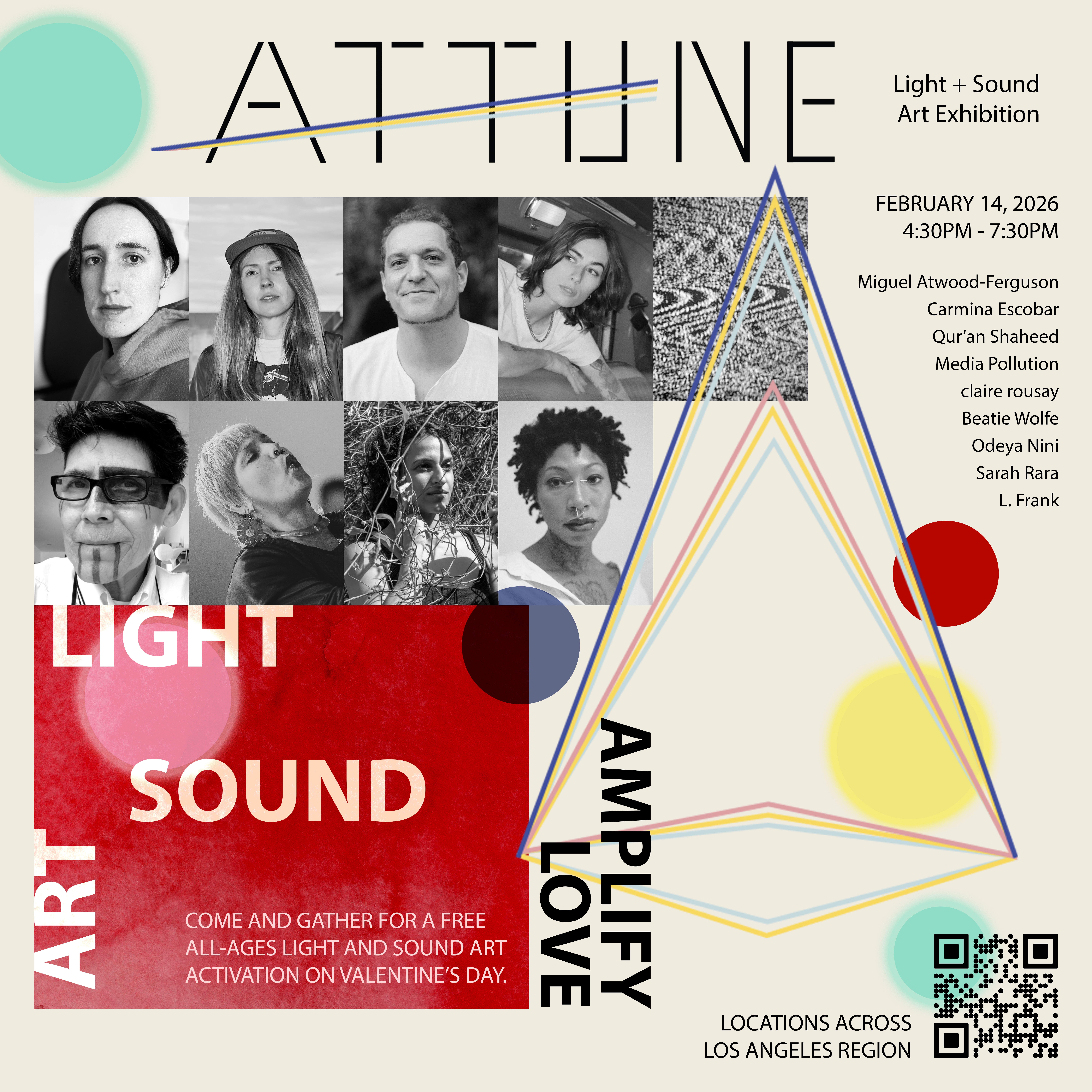 The event will feature visionary artists including Miguel Atwood-Ferguson, Beatie Wolfe, Sarah Rara, Media Pollution, claire rousay, L.Frank, Qur’an Shaheed, Carmina Escobar, Media Pollution, and Odeya Nini each presenting unique sound-based works that invite audiences to slow down, listen deeply, engage and reconnect with one another. In a moment when civic life is strained by division, isolation, and uncertainty, Attune 1.0 offers a multi-disciplinary intervention—a chance to activate, and synchronize across Los Angeles’ diverse landscapes.