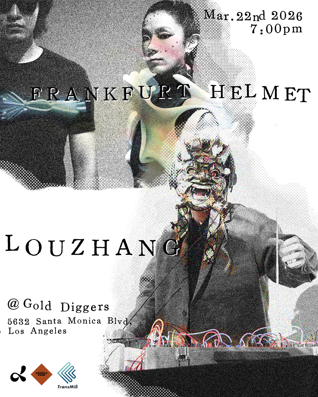 March 22 at Gold Diggers, curated by Louzhang-lz, People Pump, and co-presented by dublab, this night brings the living, active sound of contemporary electronic music straight from Shanghai to Los Angeles. Frankfurt Helmet and Louzhang-lz, two close collaborators, yet radically different A/V electronic artists, stand as distinct forces shaping Shanghai’s evolving electronic music culture. Reuniting on the opposite side of the planet, they present immersive live A/V performances delivering fresh contemporary rhythms from East Asia.