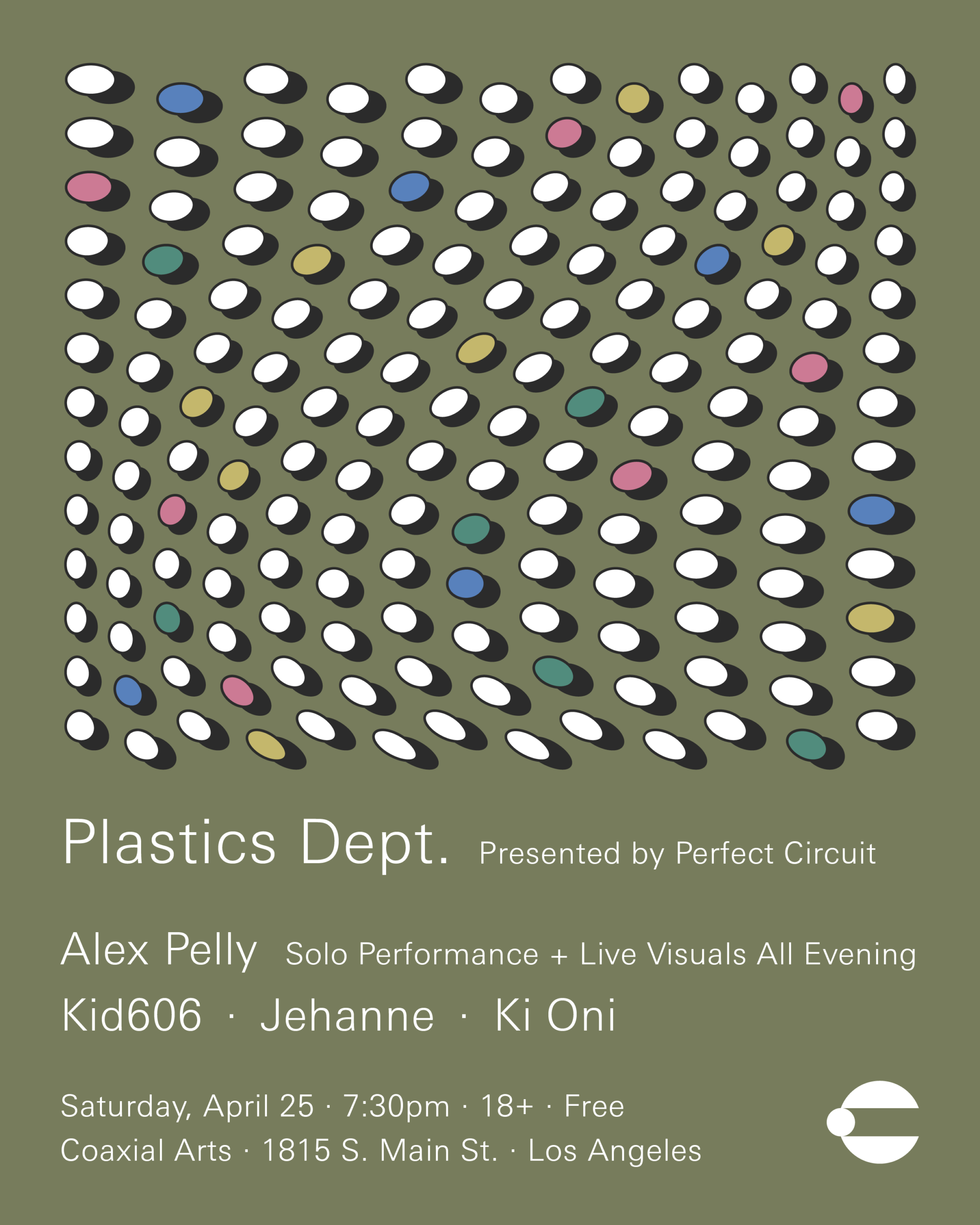Perfect Circuit’s event series Plastics Dept. is back — this time with an evening curated by Los Angeles video artist + musician (and dublab resident) Alex Pelly. We’re gathering once again at Coaxial Arts, this time with a hand-picked cast of musical characters selected by Pelly herself.