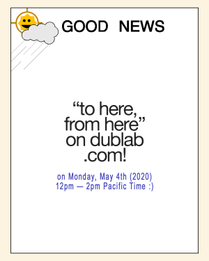 to here, from here is a series of contextual stories—songs, words, conversations, and love, exchanged in Los Angeles and out. Stream of consciousness; honesty and connections; music in its personal state, music in its shared state. Hello DJ hosts, with friends and guests, and you.