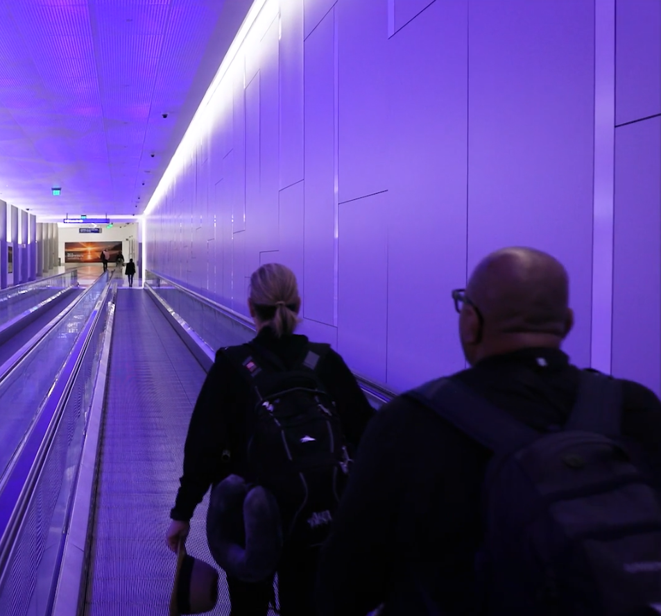 Utilizing LAX’s acoustic design and sound system in this passenger tunnel, DUBLAB has developed a sound art installation to enhance the ambience of the airport and provide a first impression of Los Angeles’ cultural offerings.